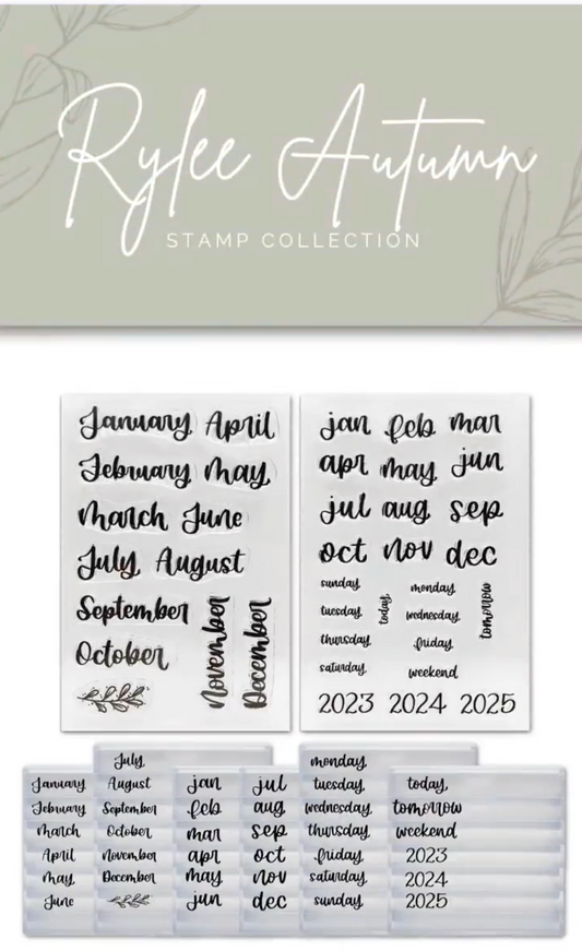 Rylee Autumn Bundle - Months of the Year, Abbreviated Months, Days of the Week Clear Calligraphy Stamps