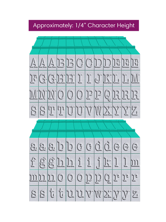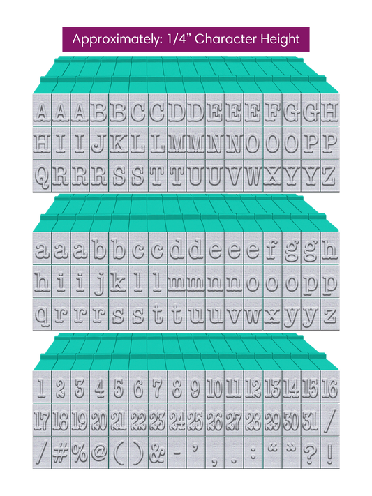 PEGZ 2.0 American Typewriter Font Attachable Stamps 48 Uppercase, 48 Lowercase, 48 Numbers & Symbols 150 piece Medium Size
