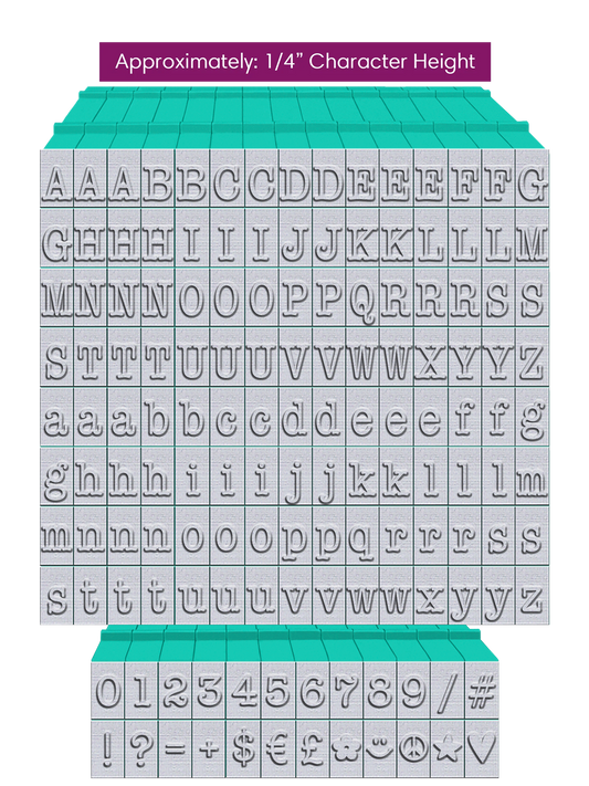 PEGZ 2.0 American Typewriter Font Attachable Stamps 60 Uppercase, 60 Lowercase, 24 Numbers & Symbols 150 piece Medium Size