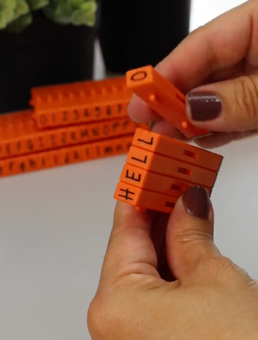 PEGZ 2.0 Alphabet Stamps Clickable Connectable Orange Crush Font 20 Numbers, 12 Uppercase, 12 Lowercase, 4 Symbols and 2 Blanks, 50 Pc Medium Size