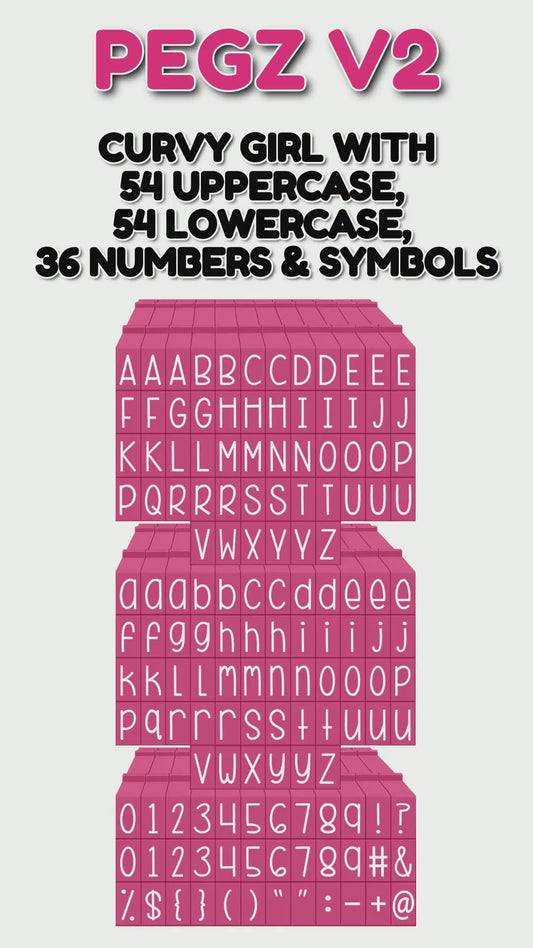 PEGZ 2.0 Alphabet Stamps Clickable Connectable Curvy Girl Font 54 Uppercase, 54 Lowercase, 36 Numbers & Symbols, 6 Blanks, 150 Pc Bundle Medium Size