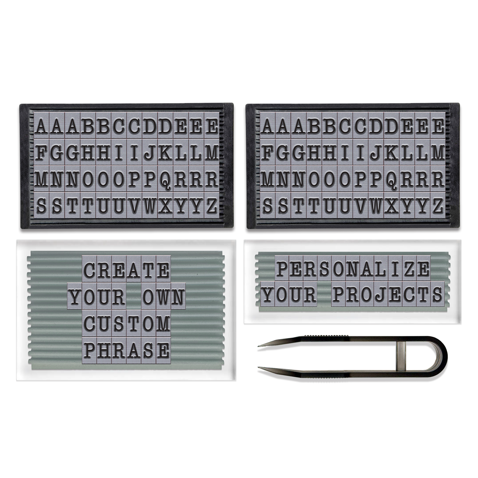 This revolutionary stamp set provides immediate versatility, flexibility and customization with every project. Included are 96 rubber stamp characters plus a 2x3" and a 1x3" grooved stamping tool. Use the 2" tall grooved stamp tool for custom phrases up to 5 lines. And use the 1" tall grooved stamp tool for 1 or 2-line custom words or messages. The repositional/reusable polymer backing on the rubber stamp letter holders allows you the option to use your customized stamps with a stamping platform to easily create multiples of the same project. This will allow you to easily stamp many multiples of the same Cards, Invitations, Tags, etc.