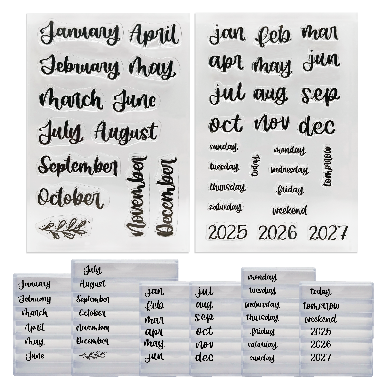 Rylee Autumn Bundle - Months of the Year, Abbreviated Months, Days of the Week Clear Calligraphy Stamps with Stackable Clear Blocks